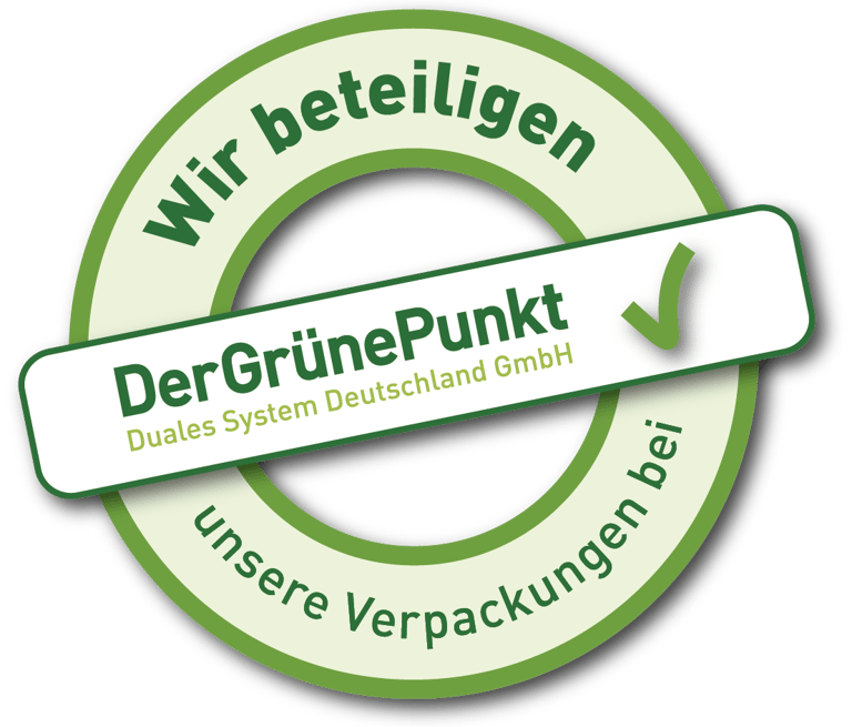 Hinweis: Mit diesem Logo möchten wir zeigen, dass wir Kunde bei Der Grüne Punkt – Duales System Deutschland GmbH sind und unsere Verkaufsverpackungen für Deutschland am dualen System Der Grüne Punkt beteiligen.